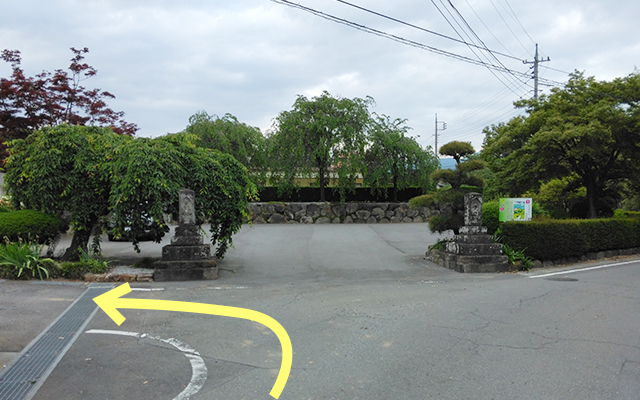 ↓ 長桂寺の小さな看板が右手に立っています。右折して約400メートル進みます。